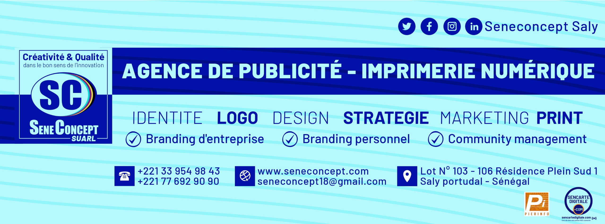 La visibilité est cruciale dans la stratégie marketing des organisations, des produits ou des services. SENE CONCEPT est la solution de communication spécialisée dans la création de supports Imprimés et Digitaux. Nous rayonnons sur tout le Sénégal à partir de la petite côte. Dans une dynamique d’amélioration continue, gràce à une logistique de pointe et une ressource humaine passionnée. Nous aidons nos partenaires à atteindre le plus grand nombre de prospects, à gagner de nouveaux clients et à optimiser leurs réputations.